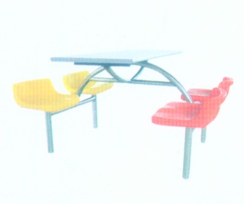 首頁 >> 廚具展廳 >> 快餐桌椅系列 >> 四人全鋼弧形低背椅餐桌 |